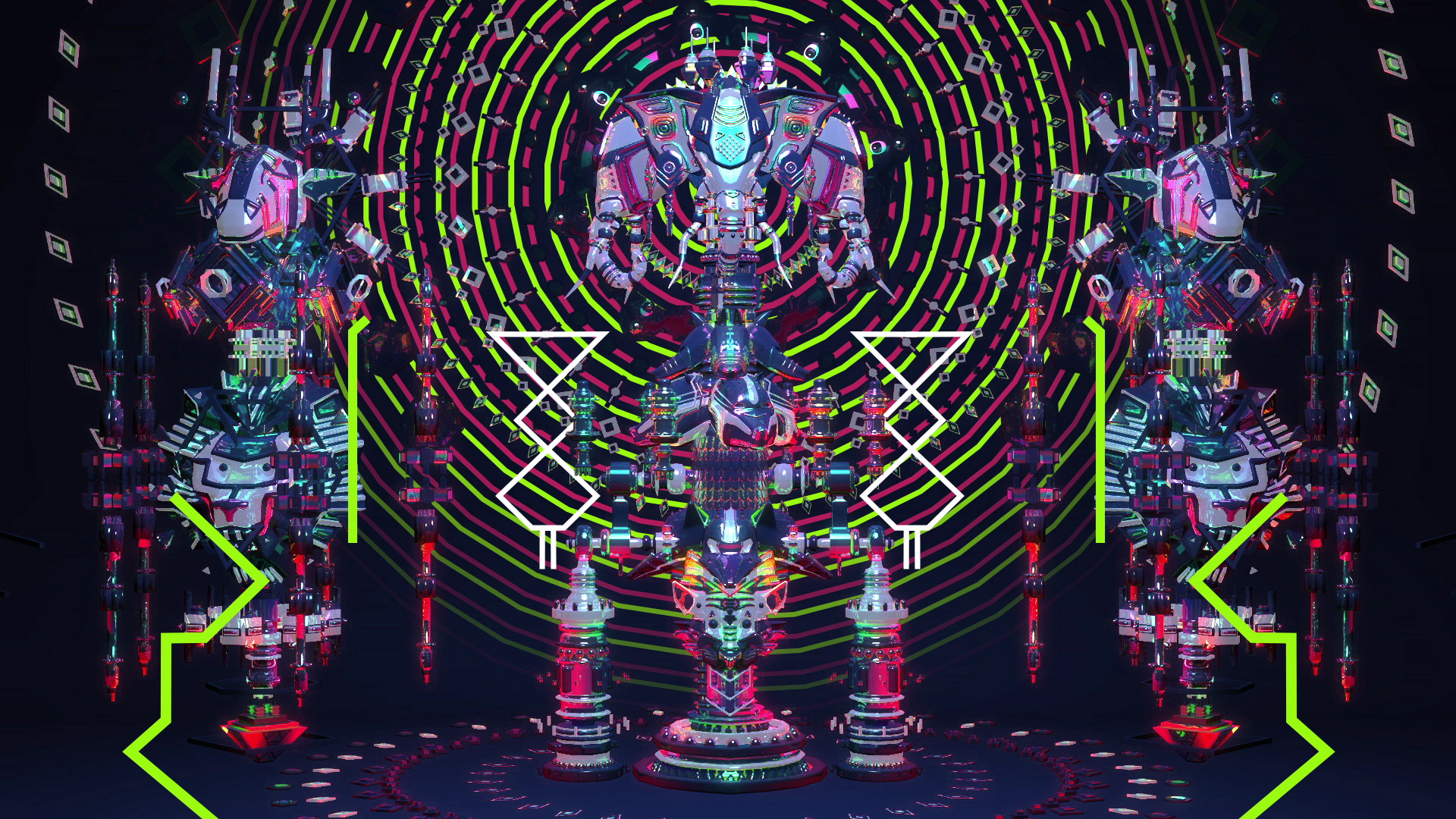 Cosmic Machinaria is a set of performance visuals made for Bassnectar's 2016 festival tour. There are a total of 16 loops on this set, which shows the idea of an galactic engine capable of constructing stars, planets and other parts of the cosmos.