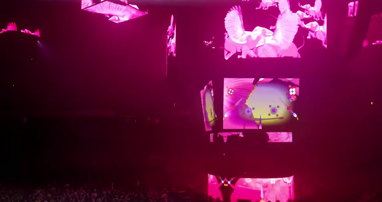 It felt really good seeing this on display and the audience enjoying it along with his awesome music! Check out more screenshots of the work below as well as a video of his actual performance.